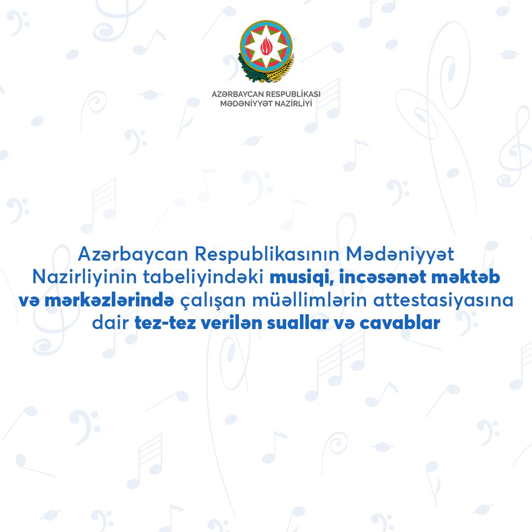 Azərbaycan Respublikası Mədəniyyət Nazirliyinin tabeliyində fəaliyyət göstərən musiqi, incəsənət məktəb və mərkəzlərində çalışan müəllimlərin peşə səriştə və bacarıqlarının ölçülməsi, ixtisasına, sənətinə müvafiq olaraq onların tutduğu vəzifəyə uyğunluğunun müəyyənləşdirilməsi məqsədilə attestasiya həyata keçirilir.