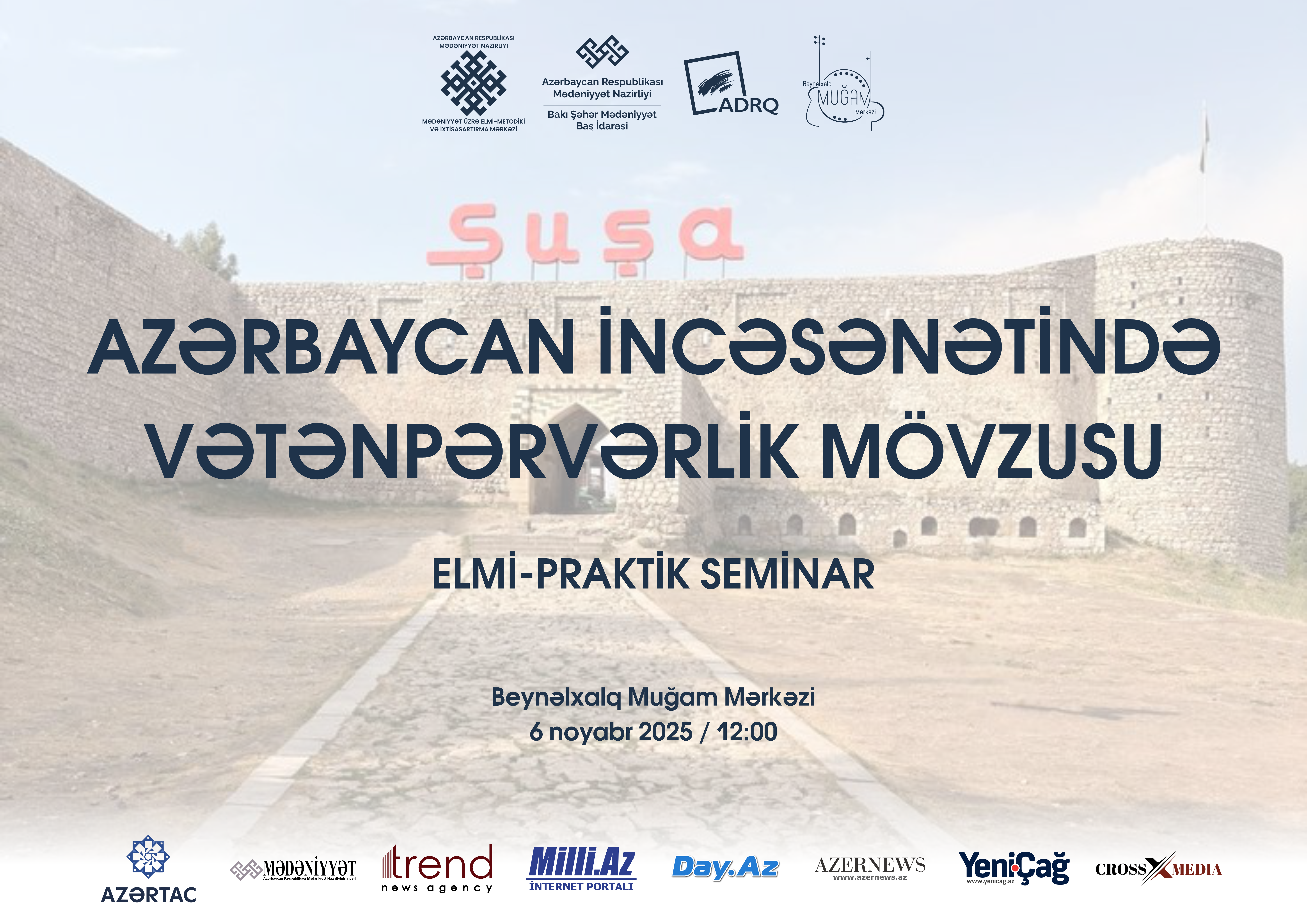 Mədəniyyət Nazirliyi Mədəniyyət üzrə Elmi-Metodiki və İxtisasartırma Mərkəzinin (MEMİM) təşkilatçılığı ilə noyabrın 6-da Beynəlxalq Muğam Mərkəzində “Azərbaycan incəsənətində vətənpərvərlik mövzusu” adlı elmi-praktik seminar keçiriləcək.