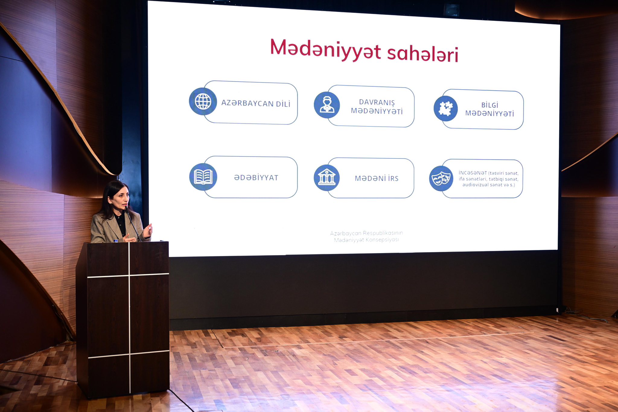 Təqdimatda Mədəniyyət Konsepsiyasının məqsəd və istiqamətləri, icra mərhələləri və s. haqqında ətraflı məlumat verilib.
