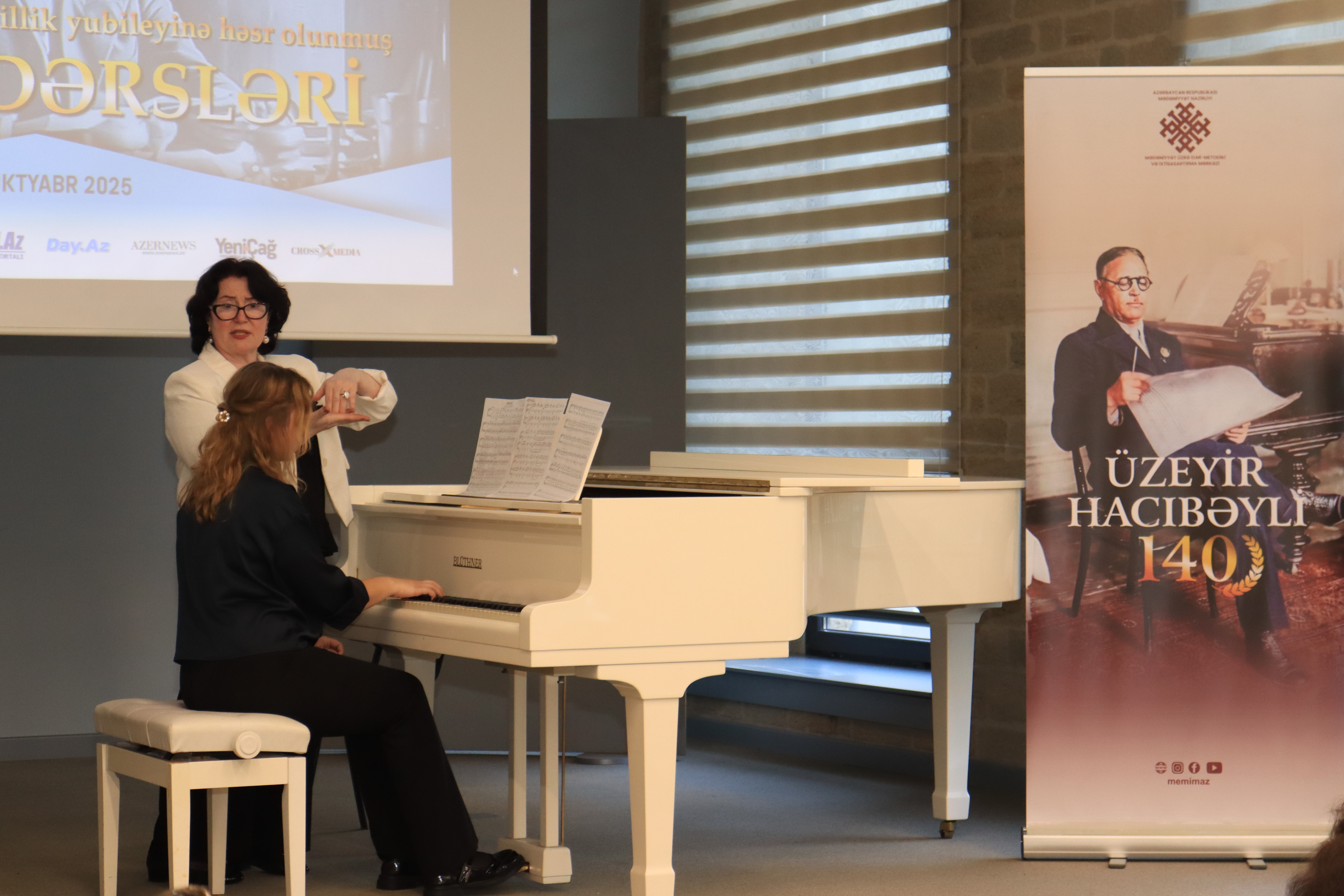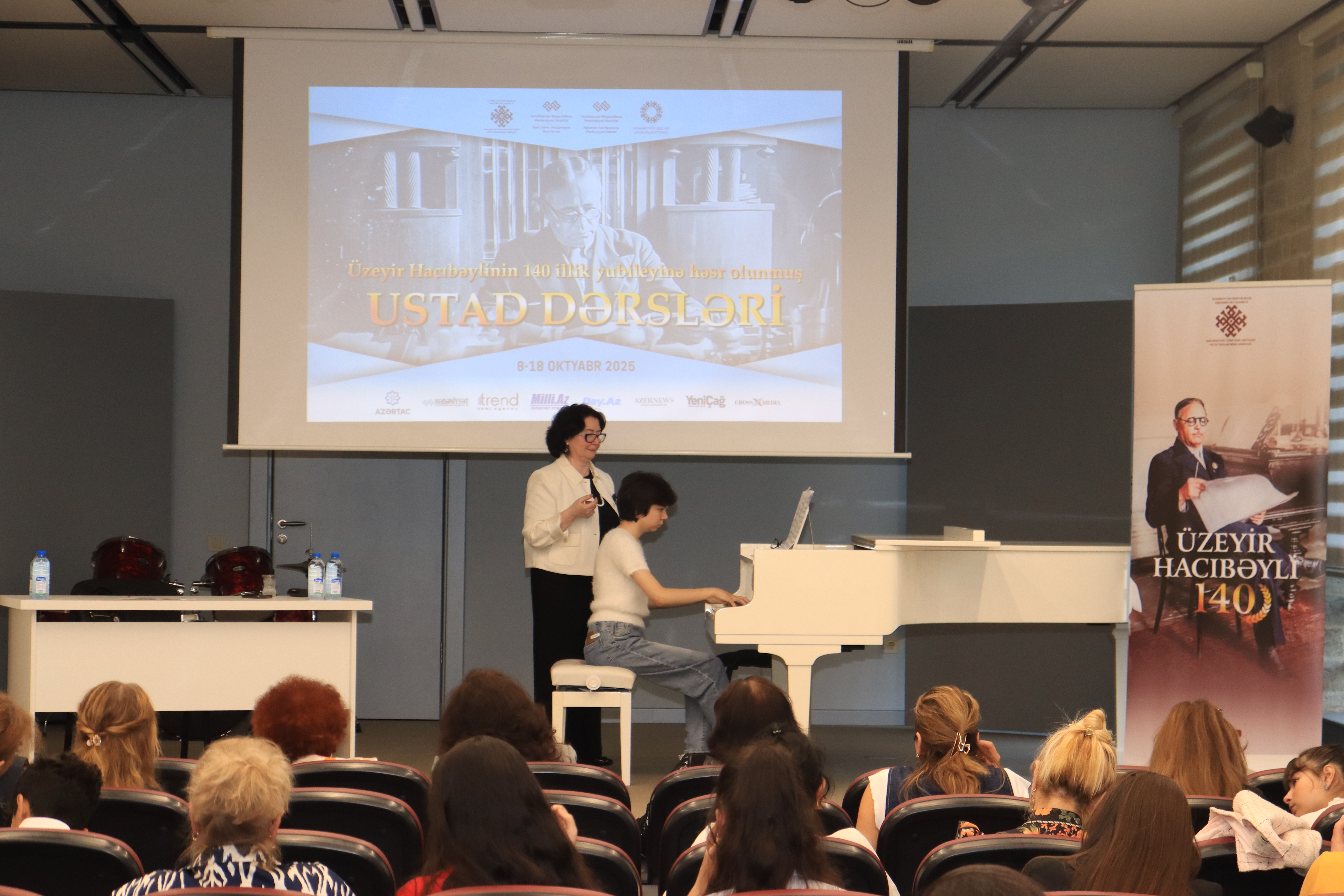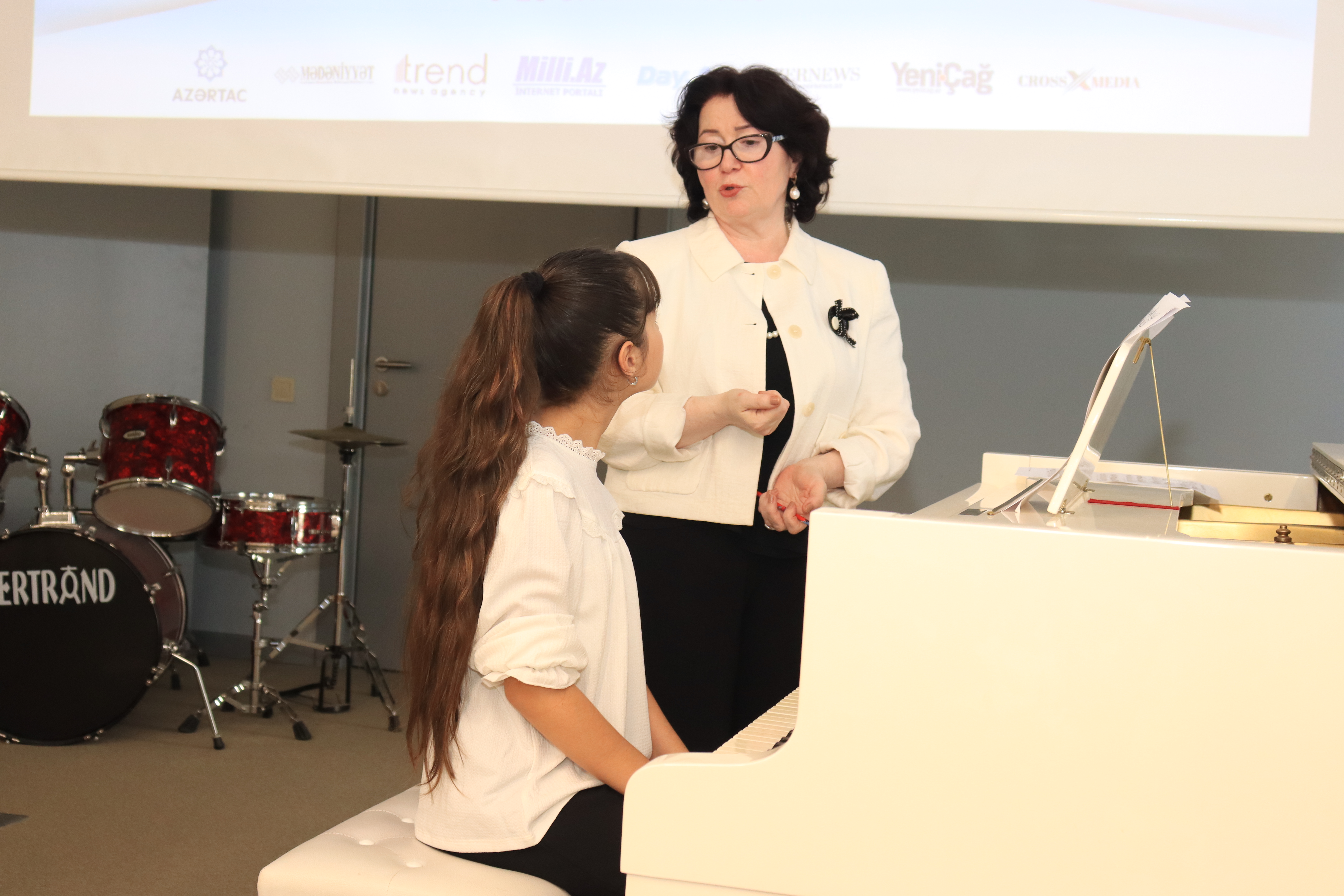 N.Quliyeva şagirdlərin ifası üzərində tövsiyələrini verib, repertuar seçimi, texniki imkanların inkişafı və digər istiqamətlərdə auditoriyanı maraqlandıran sualları cavablandırıb.