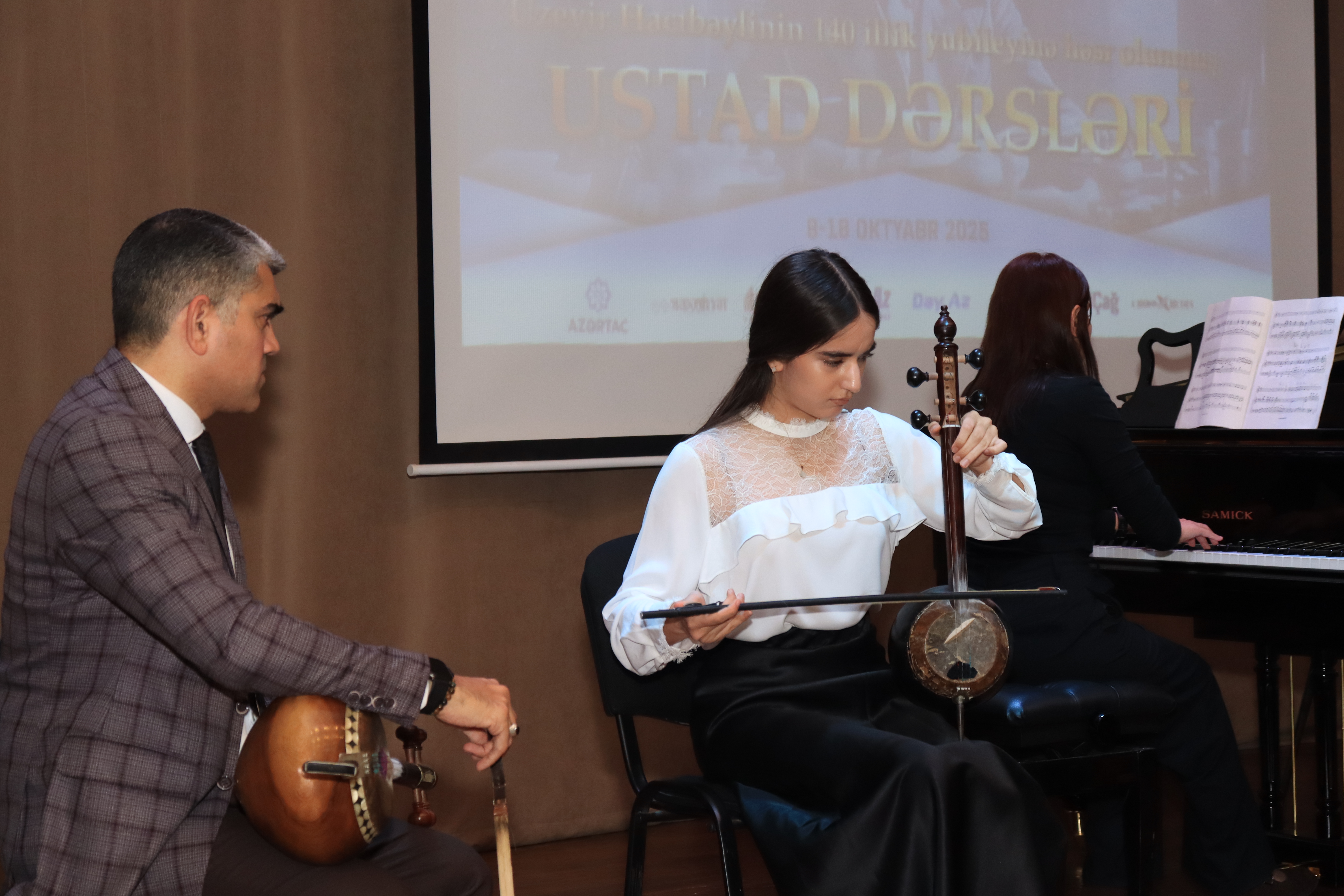Kamança ifaçısı, Əməkdar artist, sənətşünaslıq üzrə fəlsəfə doktoru, dosent Toğrul Əsədullayev tərəfindən aparılan dərsdə bu təhsil ocağı ilə yanaşı, paytaxtda fəaliyyət göstərən Kövkəb Səfərəliyeva adına 16 nömrəli, Cabbar Qaryağdıoğlu adına 9 nömrəli və 4 nömrəli uşaq musiqi məktəblərindən müəllim və şagirdlər iştirak ediblər.