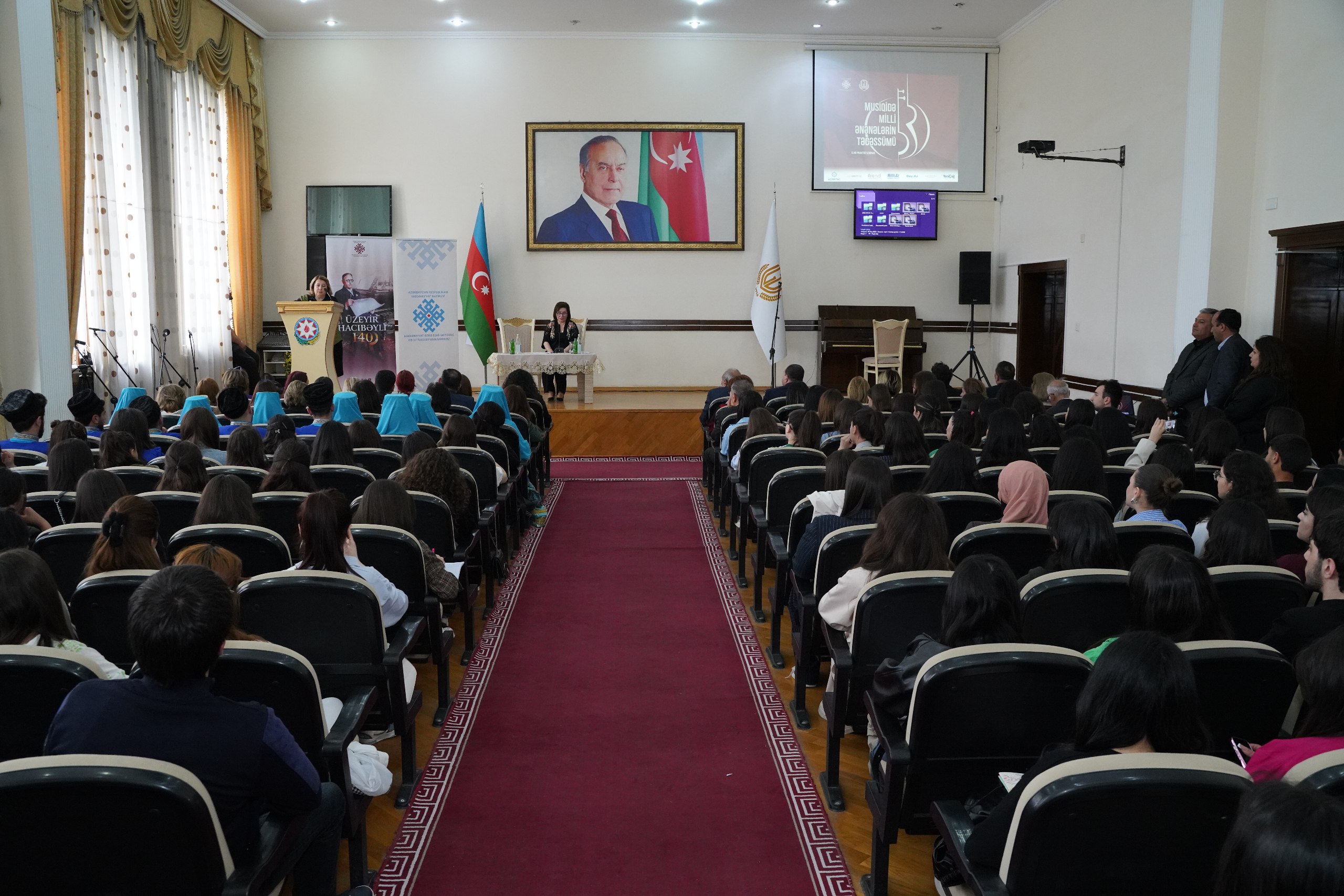 Gəncə Dövlət Universitetinin rektorunun baş müşaviri, tarix üzrə fəlsəfə doktoru, dosent Asif Cavadov və MEMİM-in direktoru vəzifəsini icra edən sənətşünaslıq üzrə fəlsəfə doktoru Vüqar Hümbətov seminar iştirakçılarını salamlayaraq dahi bəstəkarımız Üzeyir Hacıbəylinin anadan olmasının 140 illiyi çərçivəsində keçirilən seminarın məqsədinin milli köklərimiz zəminində formalaşan bəstəkarlıq ənənələri, Azərbaycan peşəkar musiqi irsinin tədqiqat məsələlərini gənc nəslə çatdırmasını vurğulayıblar.