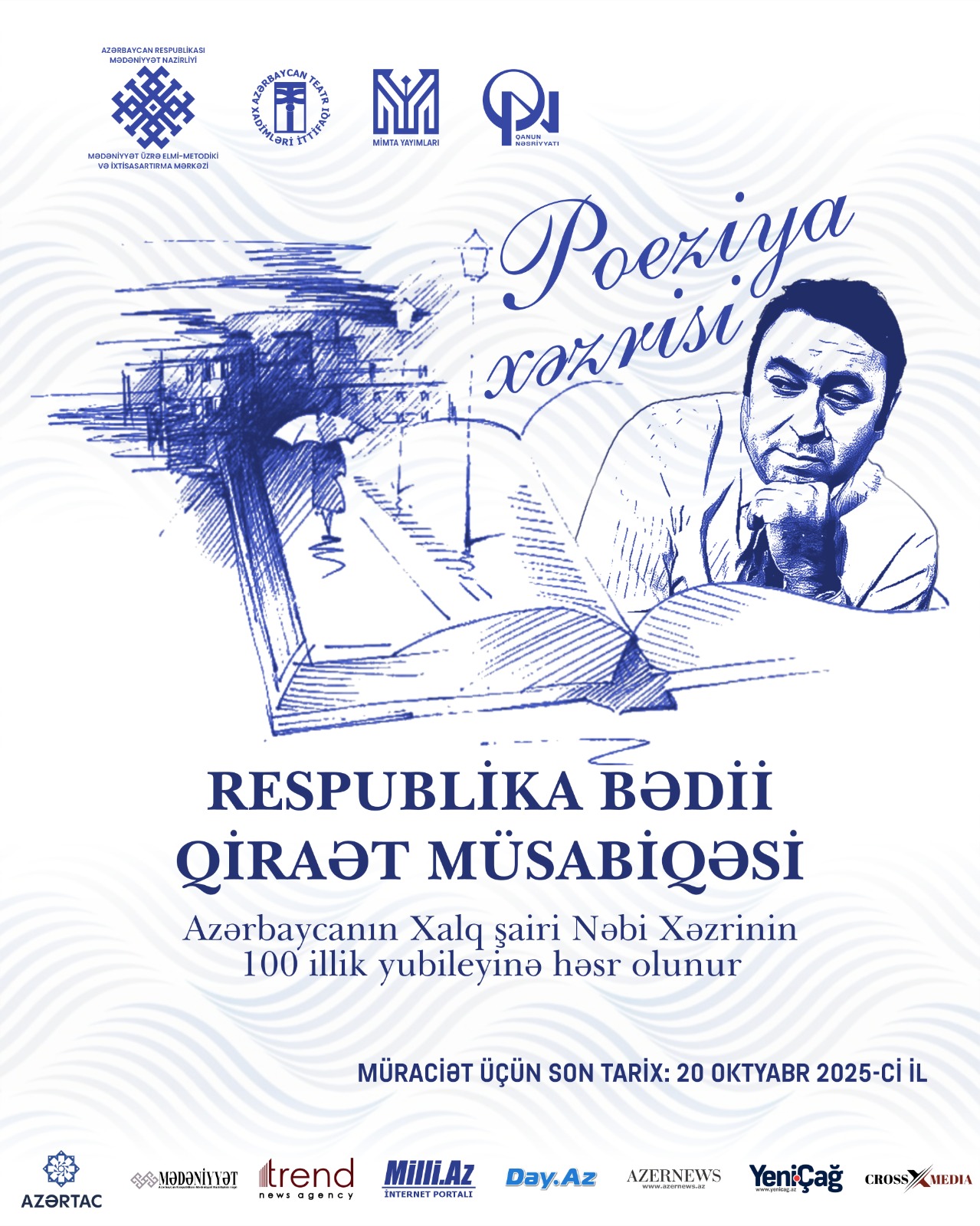 Mədəniyyət Nazirliyi Mədəniyyət üzrə Elmi-Metodiki və İxtisasartırma Mərkəzinin təşkilatçılığı, Azərbaycan Teatr Xadimləri İttifaqının təşkilati dəstəyi, “Qanun” nəşriyyatı və “MİMTA” yayınlarının tərəfdaşlığı ilə Nəbi Xəzrinin 100 illiyi münasibətilə “Poeziya Xəzrisi” Respublika bədii qiraət müsabiqəsi elan edilir.