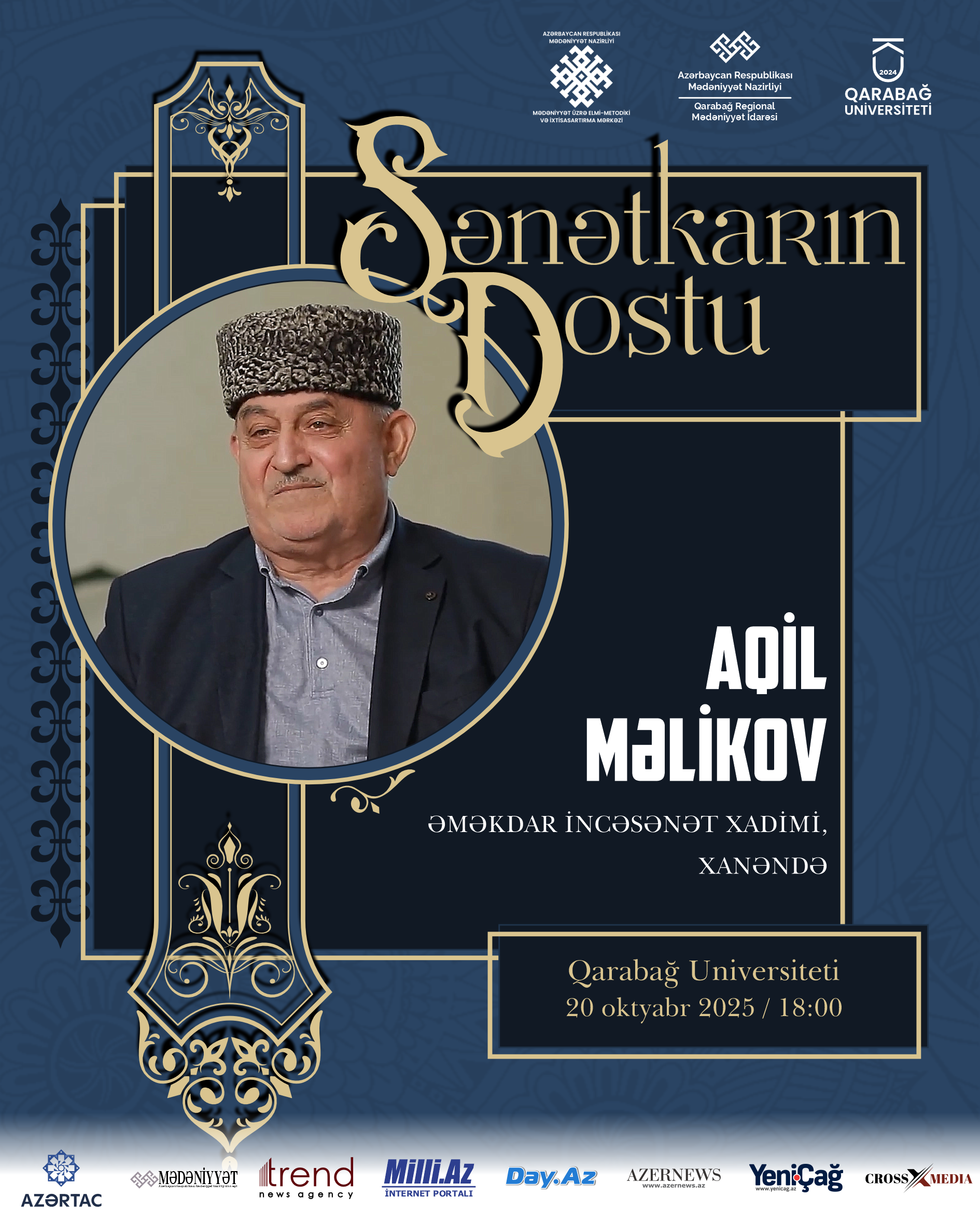 MEMİM-in “Sənətkarın dostu” layihəsi üzrə oktyabrın 20-də Qarabağ Universiteti İncəsənət fakültəsinin dəstəyi ilə bu təhsil ocağında xanəndə, pedaqoq, Əməkdar incəsənət xadimi Aqil Məlikovla görüş, oktyabrın 21-də isə “Azərbaycan mədəniyyətində Üzeyir Hacıbəyli fenomeni” mövzusunda elmi-praktik seminar keçiriləcək. Tədbir dahi bəstəkar, Azərbaycan professional musiqisinin banisi, musiqişünas və pedaqoq Üzeyir Hacıbəylinin 140 illik yubileyi münasibətilə gerçəkləşəcək.