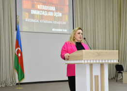 Təlim zamanı Vüsalə Şükürova Milli Kitabxanada xidmət sahəsində tətbiq olunan yeniliklərdən söz açıb. O, rəqəmsal sistemin üstünlüklərindən danışıb, kitabxanaçıların suallarını cavablandırıb.