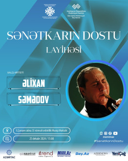 Azərbaycan Respublikası Mədəniyyət Nazirliyinin Mədəniyyət üzrə Elmi-Metodiki və İxtisasartırma Mərkəzinin təşkilatçılığı, Bakı şəhər Mədəniyyət Baş İdarəsinin dəstəyi ilə “Sənətkarın dostu” layihəsi çərçivəsində 25 dekabr 2024-cü il tarixində Georgi Şaroyev adına 35 nömrəli onbirillik Musiqi məktəbində Azərbaycan Respublikasının Xalq artisti, balaban ifaçısı Əlixan Səmədov ilə görüş keçiriləcək.