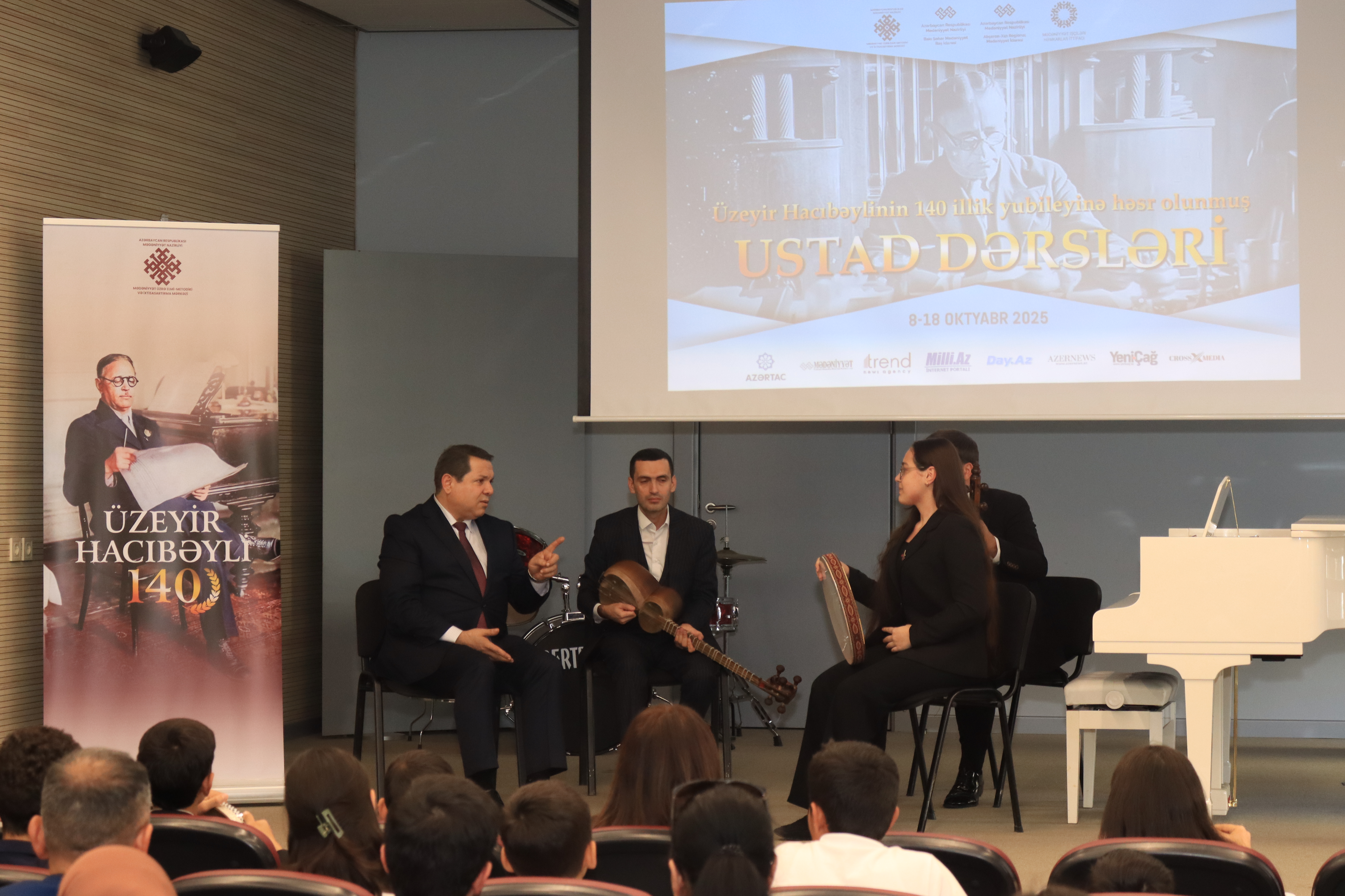 Mədəniyyət Nazirliyinin Mədəniyyət üzrə Elmi-Metodiki və İxtisasartırma Mərkəzi (MEMİM) tərəfindən dahi bəstəkar Üzeyir Hacıbəylinin 140 illiyi münasibətilə keçirilən ustad dərsləri davam edir.