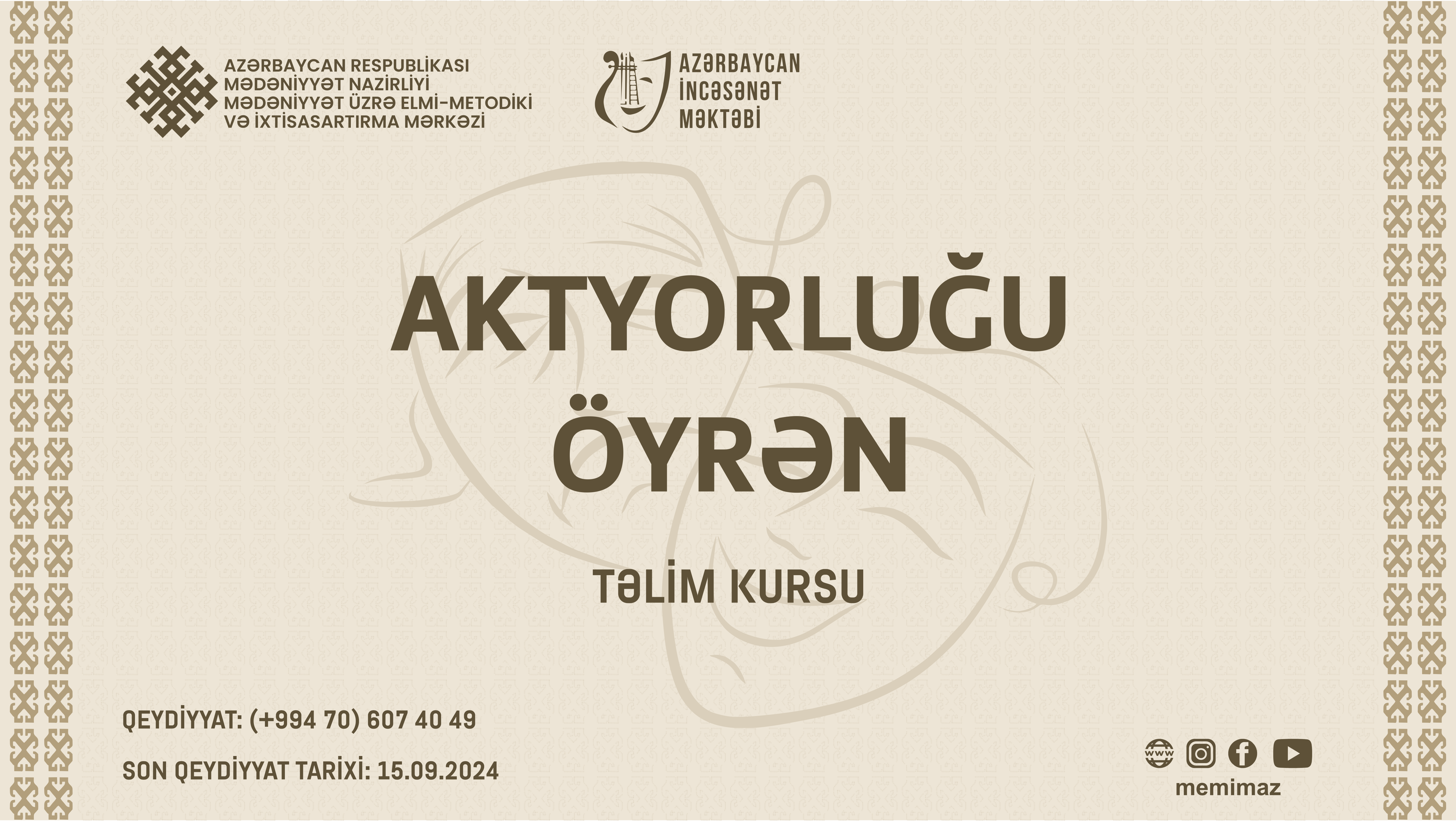 Mədəniyyət Nazirliyinin Mədəniyyət üzrə Elmi - Metodiki və İxtisasartırma Mərkəzi və Azərbaycan İncəsənət Məktəbi “Aktyorluğu öyrən” layihəsinə start verir.