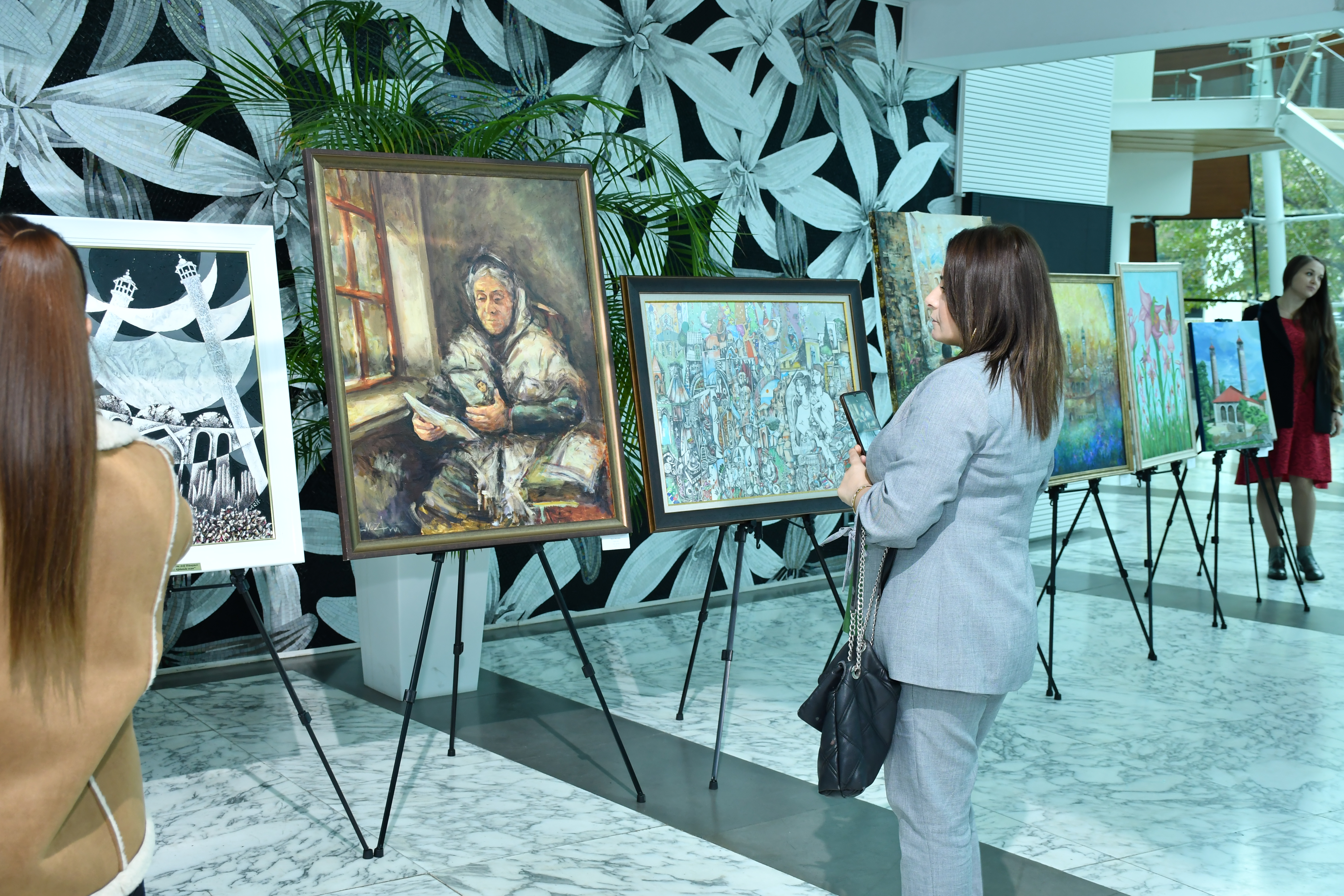 Qonaqlar əvvəlcə Dövlət Rəsm Qalereyası tərəfindən Muğam Mərkəzinin foyesində Zəfərimizin 5-ci ildönümü münasibətilə təşkil edilən rəsm sərgisi ilə tanış olublar. Sərgidə tanınmış sənətkarlar Arif Hüseynov, Mir Azər Abdullayev, Tahir Şıxəliyev, Nazim Məmmədov, eləcə də bir neçə gənc rəssamın qrafika, rəngkarlıq və plakat janrlarında işlənmiş 21 əsəri yer alıb.
