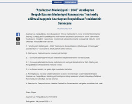“Azərbaycan Mədəniyyəti – 2040” Azərbaycan Respublikasının Mədəniyyət Konsepsiyası”nın təsdiq edilməsi haqqında Azərbaycan Respublikası Prezidentinin Sərəncamı