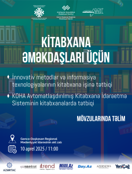 Cari ilin 10 aprel tarixində Gəncə şəhərində Azərbaycan Respublikası Mədəniyyət Nazirliyinin Mədəniyyət üzrə Elmi-Metodiki və İxtisasartırma Mərkəzinin təşkilatçılığı, Azərbaycan Milli Kitabxanasının tərəfdaşlığı, Gəncə-Daşkəsən Regional Mədəniyyət İdarəsinin dəstəyi ilə yeni tədris modulları əsasında növbəti təlim təşkil olunacaq.