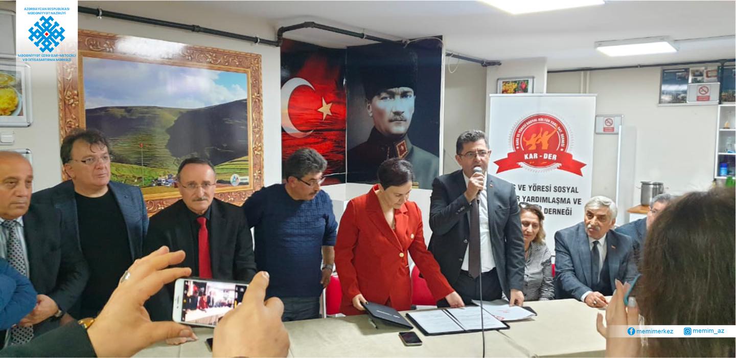 Kars ve Yöresi Kültür, Sosyal, Yardımlaşma ve Dayanışma Derneği ilə keçirilən görüşdə mədəniyyət sahəsində ixtisaslaşan dərnəklərin təşkilinə dair fikir mübadiləsi aparılmışdır. Bu sahədə Türkiyənin zəngin təcrübəsinin Azərbaycanda aşılanmasına və təbliğ edilməsinə dair razılıq əldə edilmişdir. Bunun nəticəsi olaraq sözügedən dərnəyin rəhbəri Orhan Çerkez ilə Mərkəzin direktoru Səadət Xələfbəyli anlaşma memorandumu imzalamışlar. Memoranduma əsasən hər iki təşkilat bərabər fəaliyyətin qurulmasına, birgə layihələrin gerçəkləşdirilməsinə, ortaq mədəni irsin təbliğinə dair razılığa gəlmişlər.