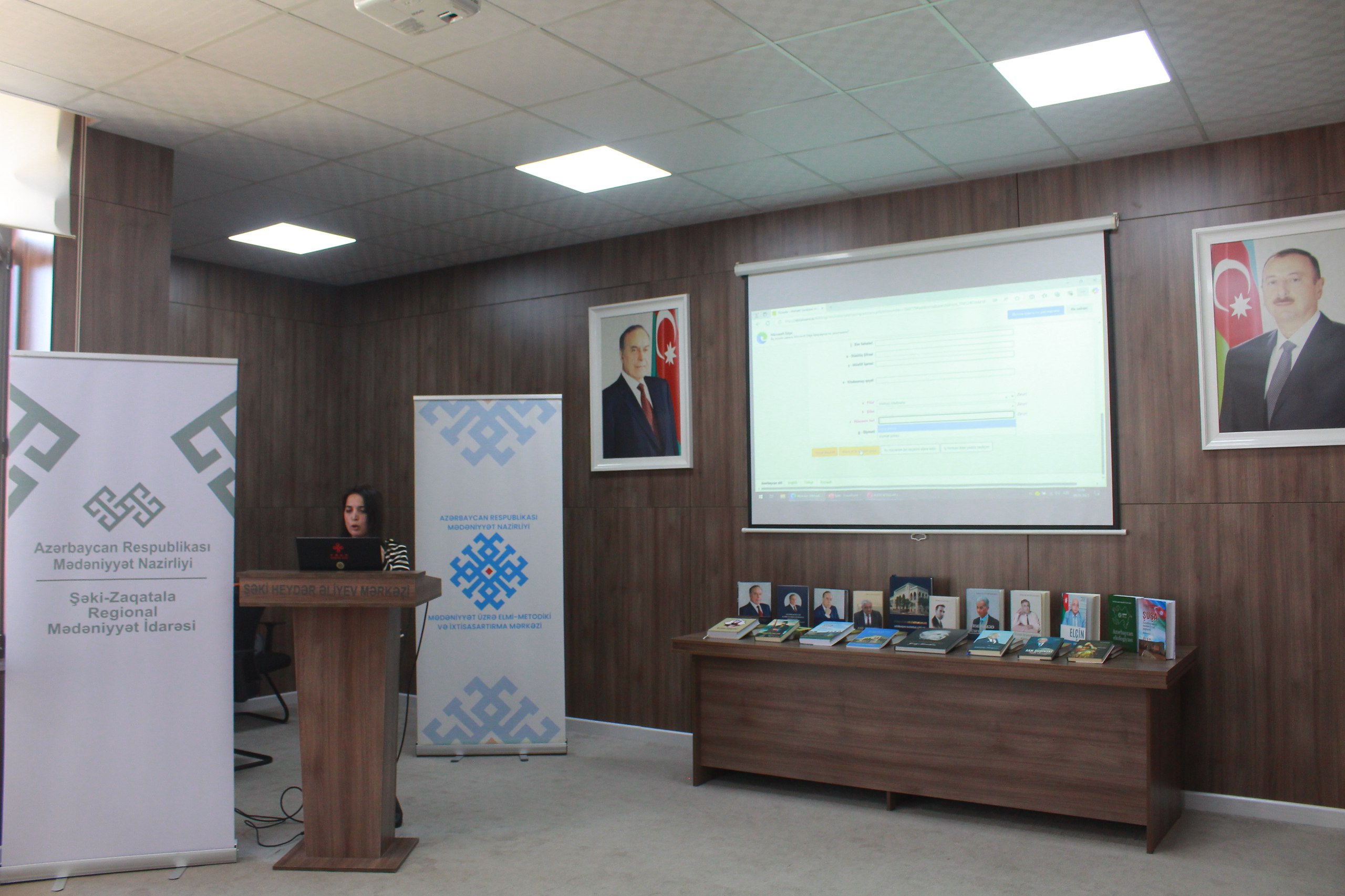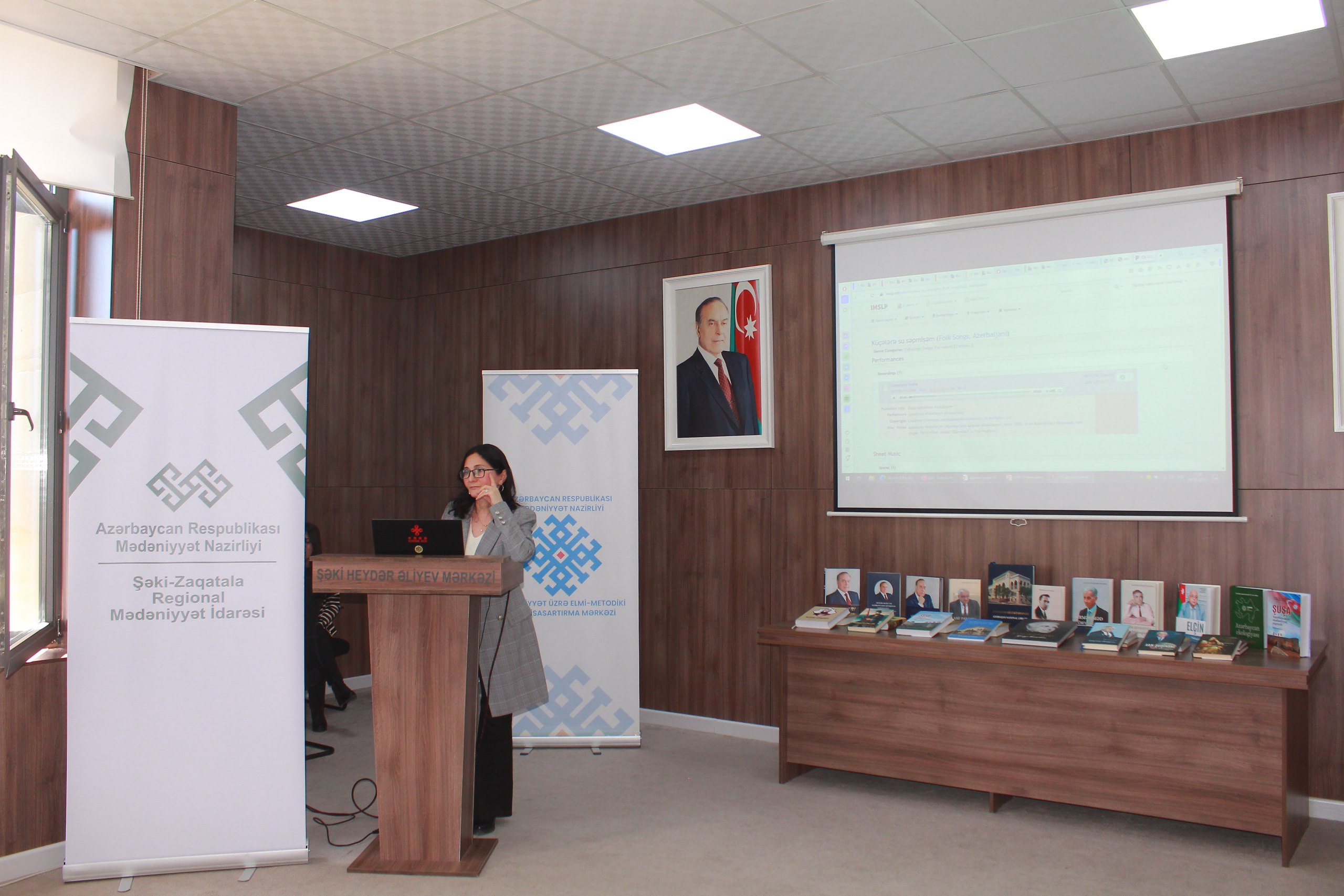 Mədəniyyət Nazirliyinin Mədəniyyət üzrə Elmi-Metodiki və İxtisasartırma Mərkəzinin (MEMİM) təşkilatçılığı, Azərbaycan Milli Kitabxanasının tərəfdaşlığı, Şəki-Zaqatala Regional Mədəniyyət İdarəsinin dəstəyi ilə Şəki şəhəri və ətraf rayonlarda yerləşən kitabxanaların əməkdaşlarının peşəkar inkişafına töhfə vermək, onların müasir kitabxana idarəçiliyi, rəqəmsal resurslardan istifadə və oxuculara xidmət sahəsində yeni metodoloji yanaşmalarla tanış olmalarını təmin etmək məqsədilə 2025-ci ilin 6 mart tarixində Şəki şəhər Heydər Əliyev Mərkəzində təlim keçirilib.