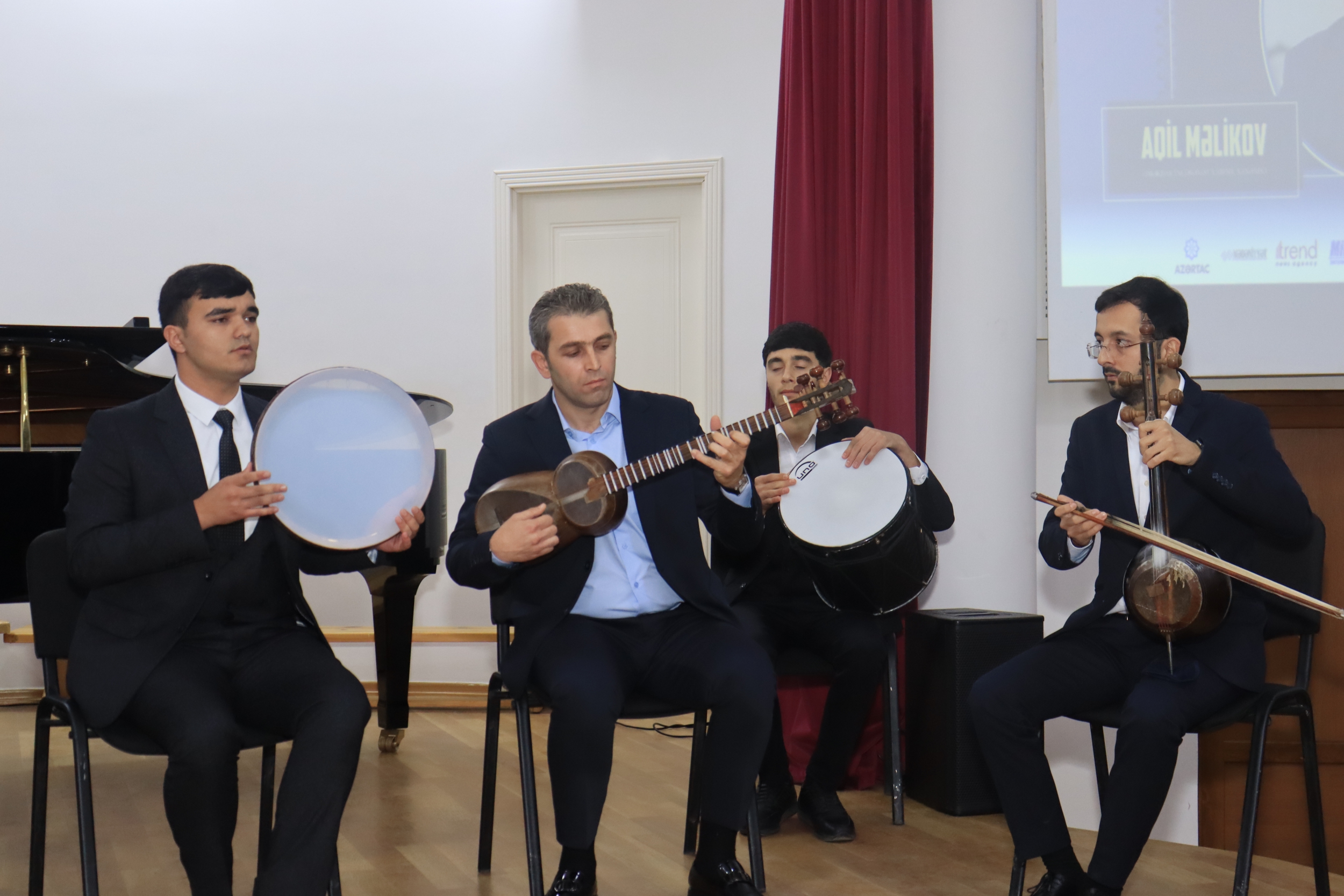 İnteraktiv formatlı görüşdə İncəsənət fakültəsinin müəllimləri – tarda Bəhruz Zeynalovun, kamançada Fərid Babayevin, nağarada tələbə İlqar Süleymanlının müşayiəti ilə bu fakültədə təhsil alan Xədicə İsmayılova “Mahur-hindi”, İsmayıl İsmayılov isə “Rahab” muğamlarını səsləndiriblər.