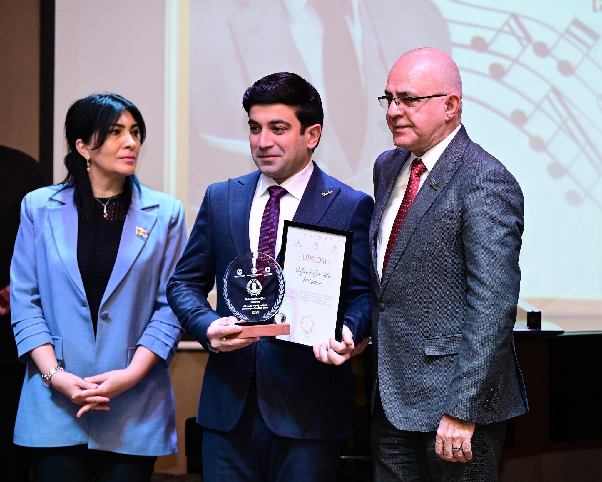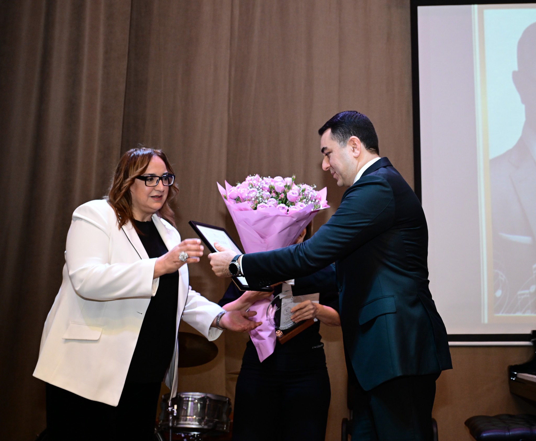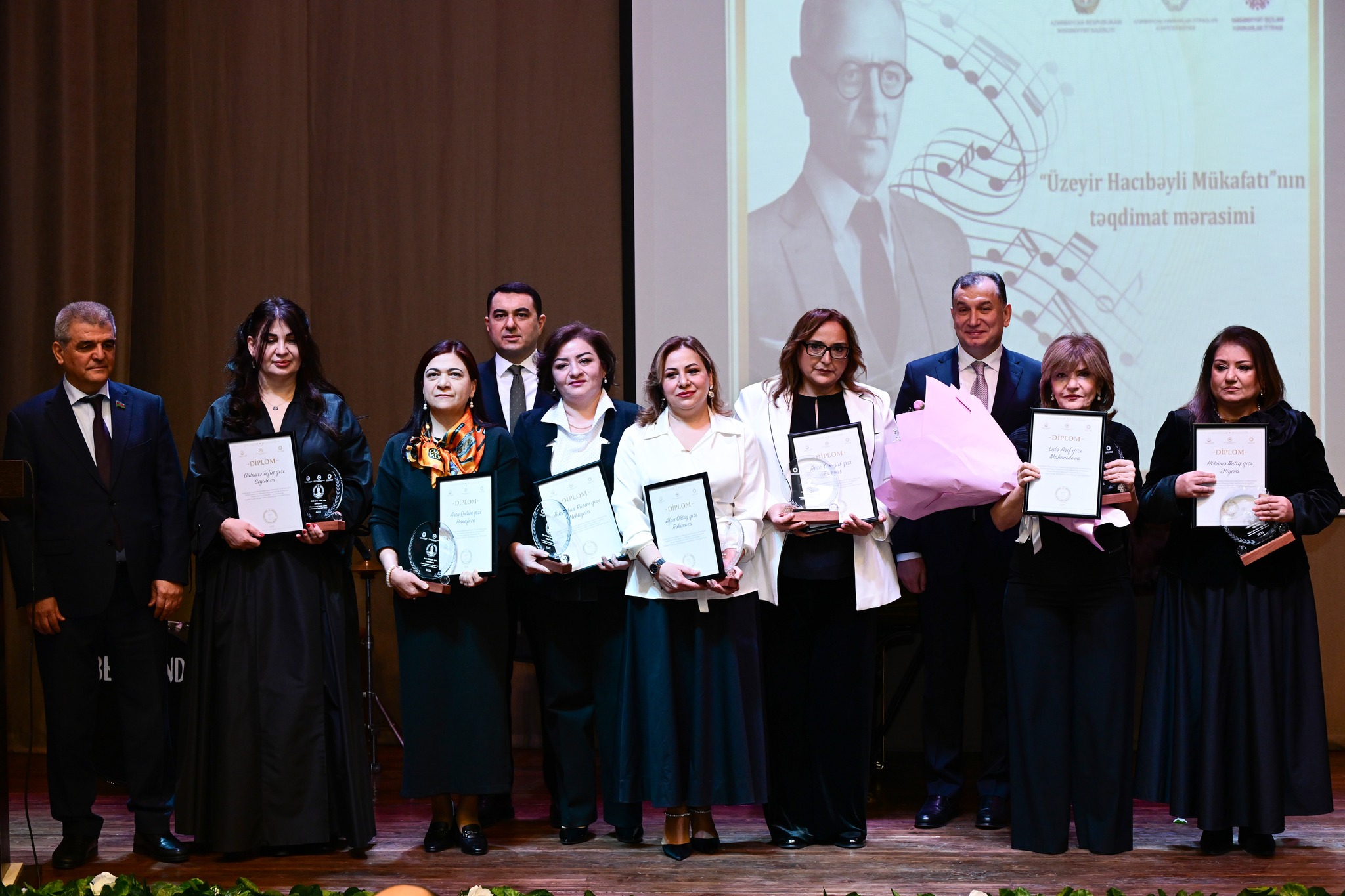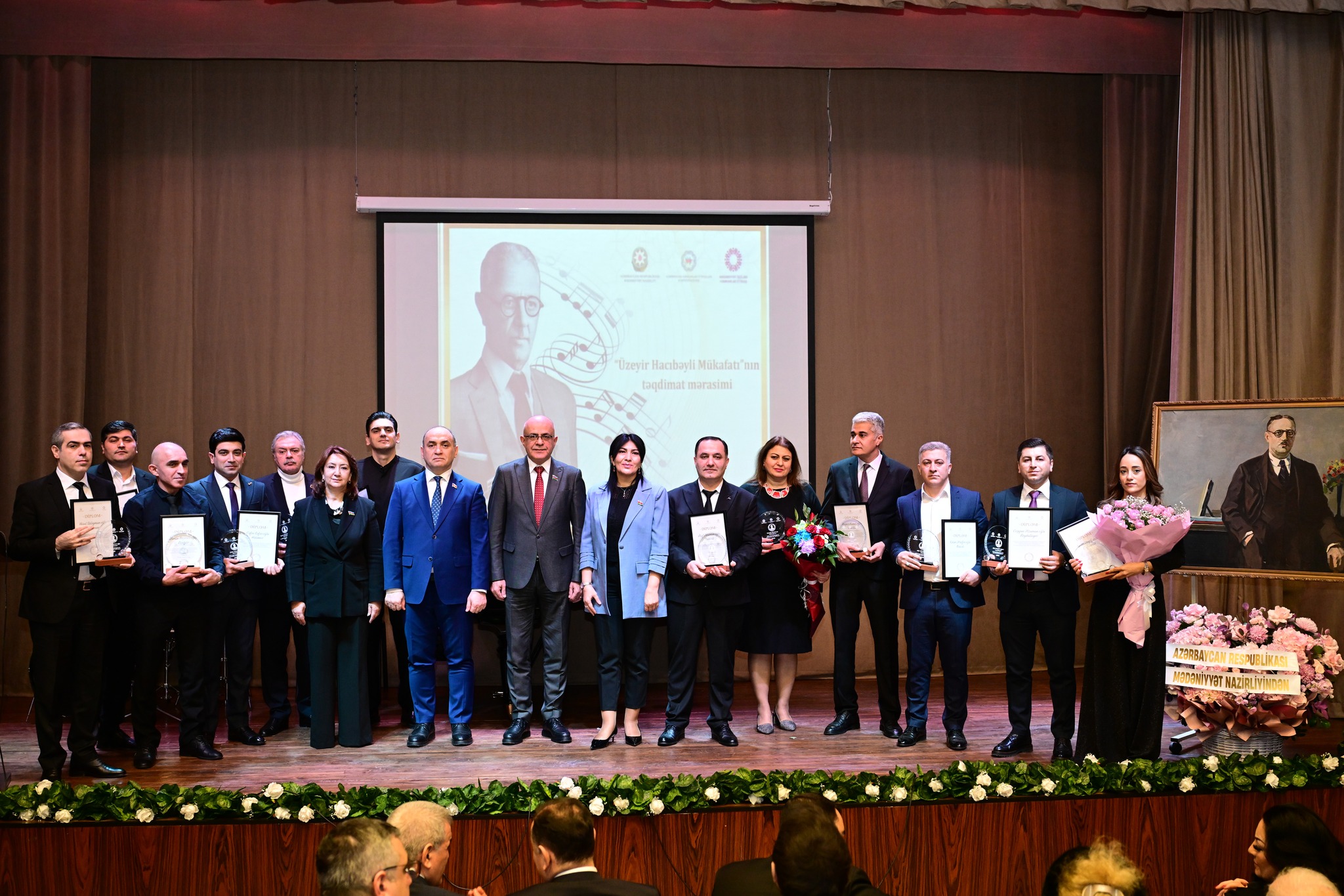 Sonra “Üzeyir Hacıbəyli Mükafatı” ekspert komissiyasının üzvləri olan tanınmış incəsənət xadimləri səhnəyə dəvət edilib. Onlara gül dəstələri və xatirə hədiyyələri təqdim olunub.