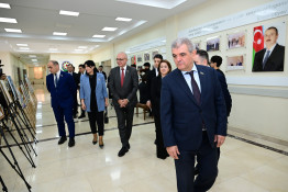 Əvvəlcə qonaqlar məktəbin foyesində şagirdlərin rəsmlərindən ibarət sərgi ilə tanış olublar.