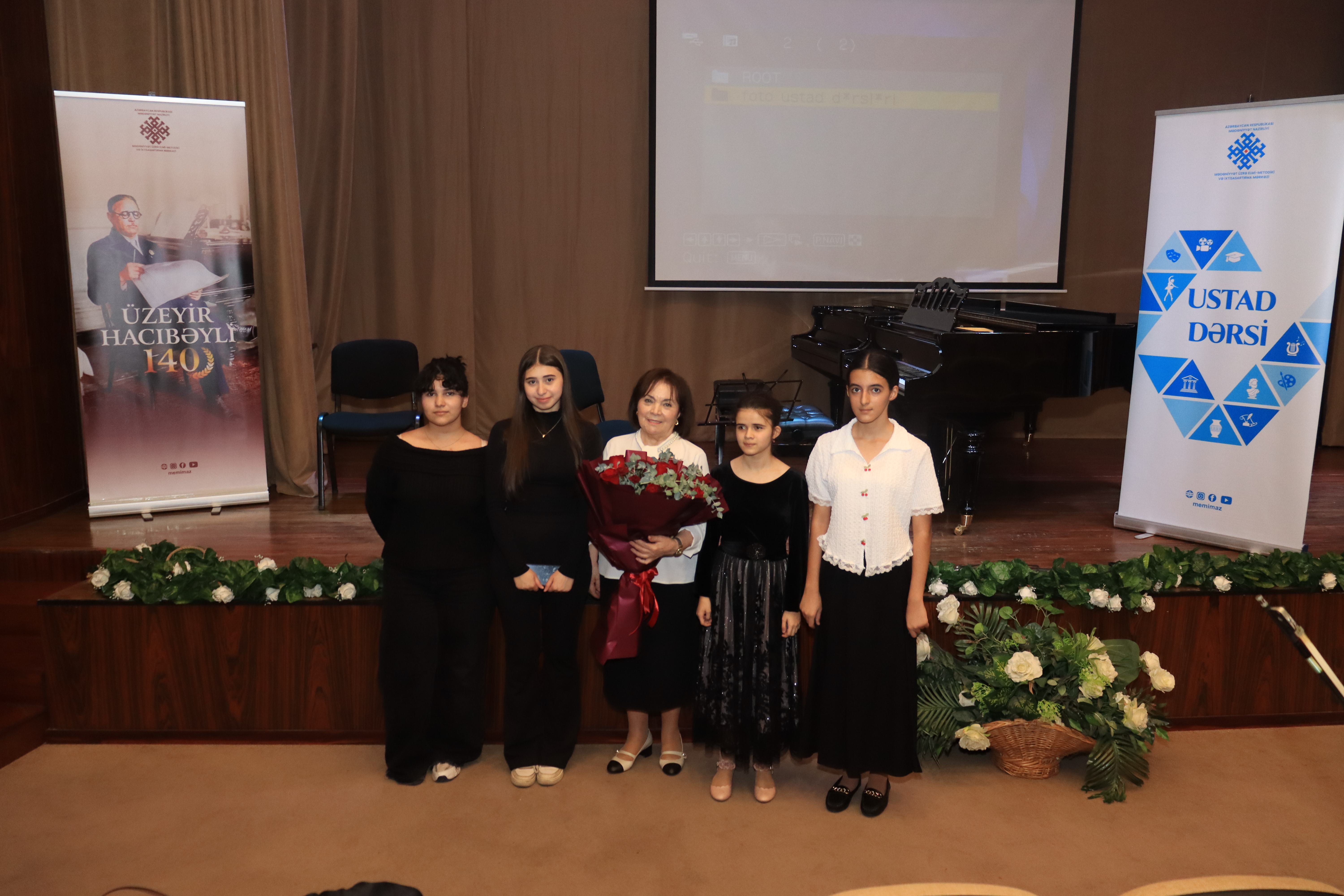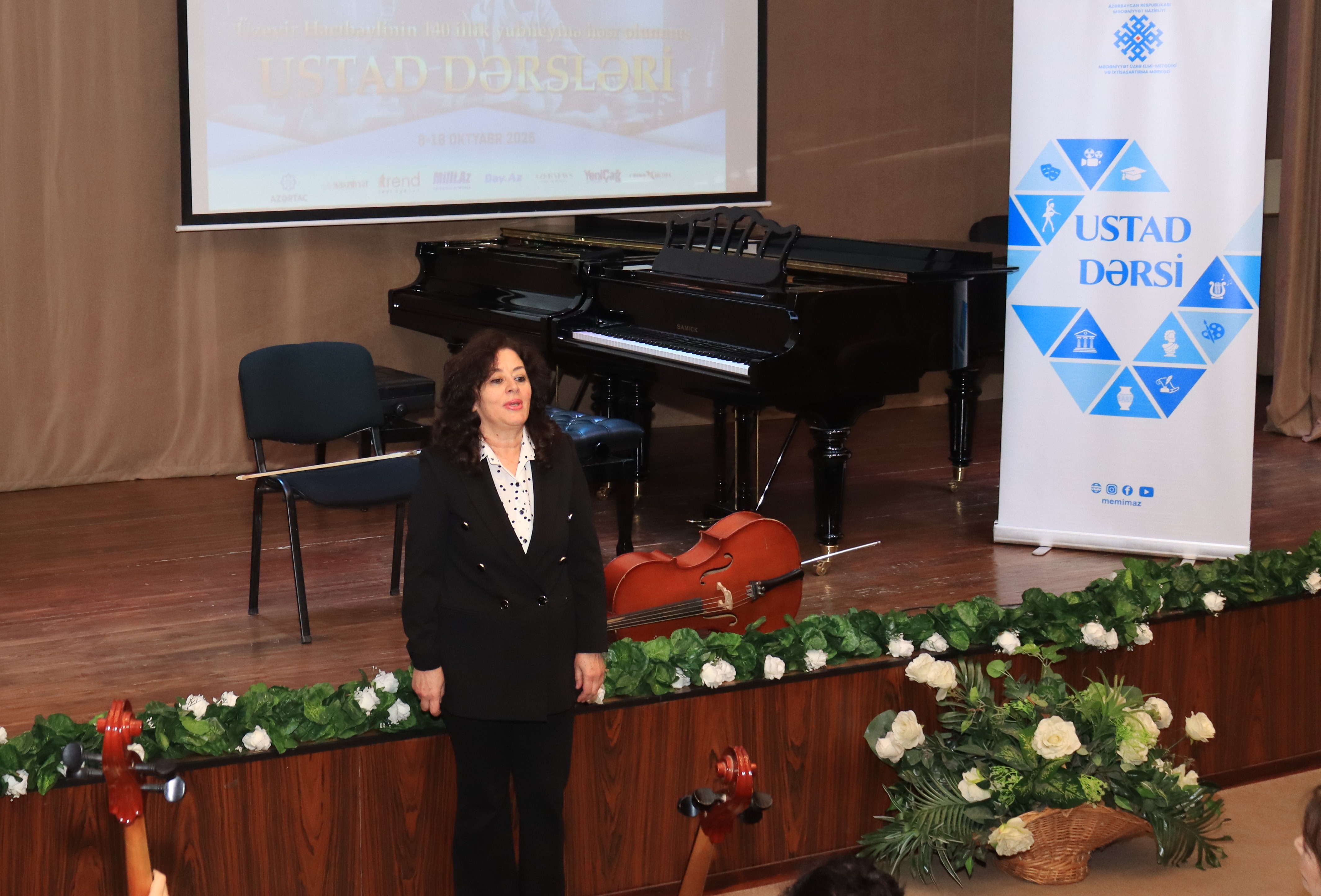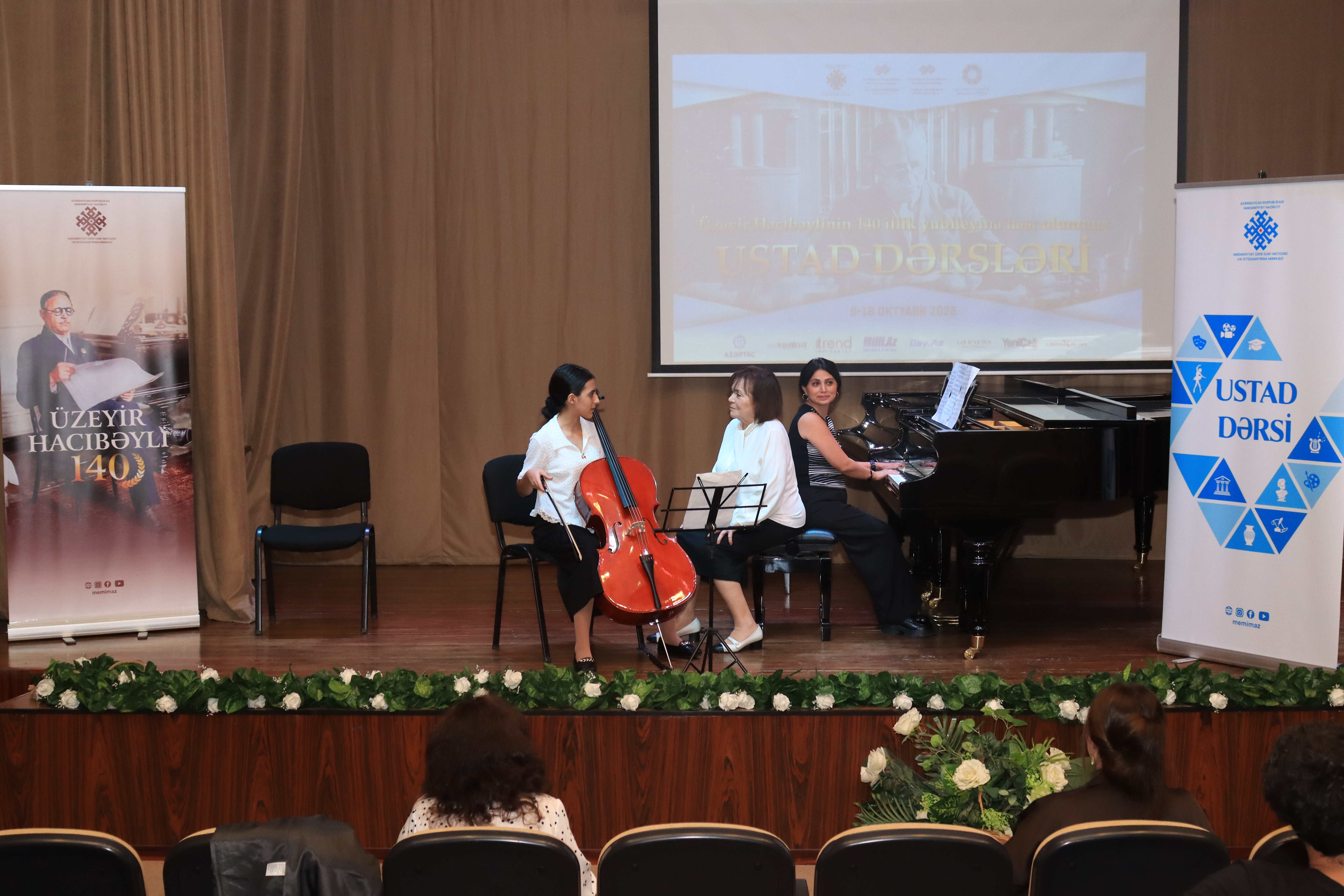 Əvvəlcə MEMİM-in şöbə müdiri Əməkdar mədəniyyət işçisi Lalə Kərimova çıxış edərək Üzeyir Hacıbəylinin yubileyi münasibətilə keçirilən ustad dərslərinin əhəmiyyətini vurğulayıb. Bildirib ki, dahi bəstəkar və pedaqoqun əsasını qoyduğu tədris ənənələri bu gün də davam etdirilir.