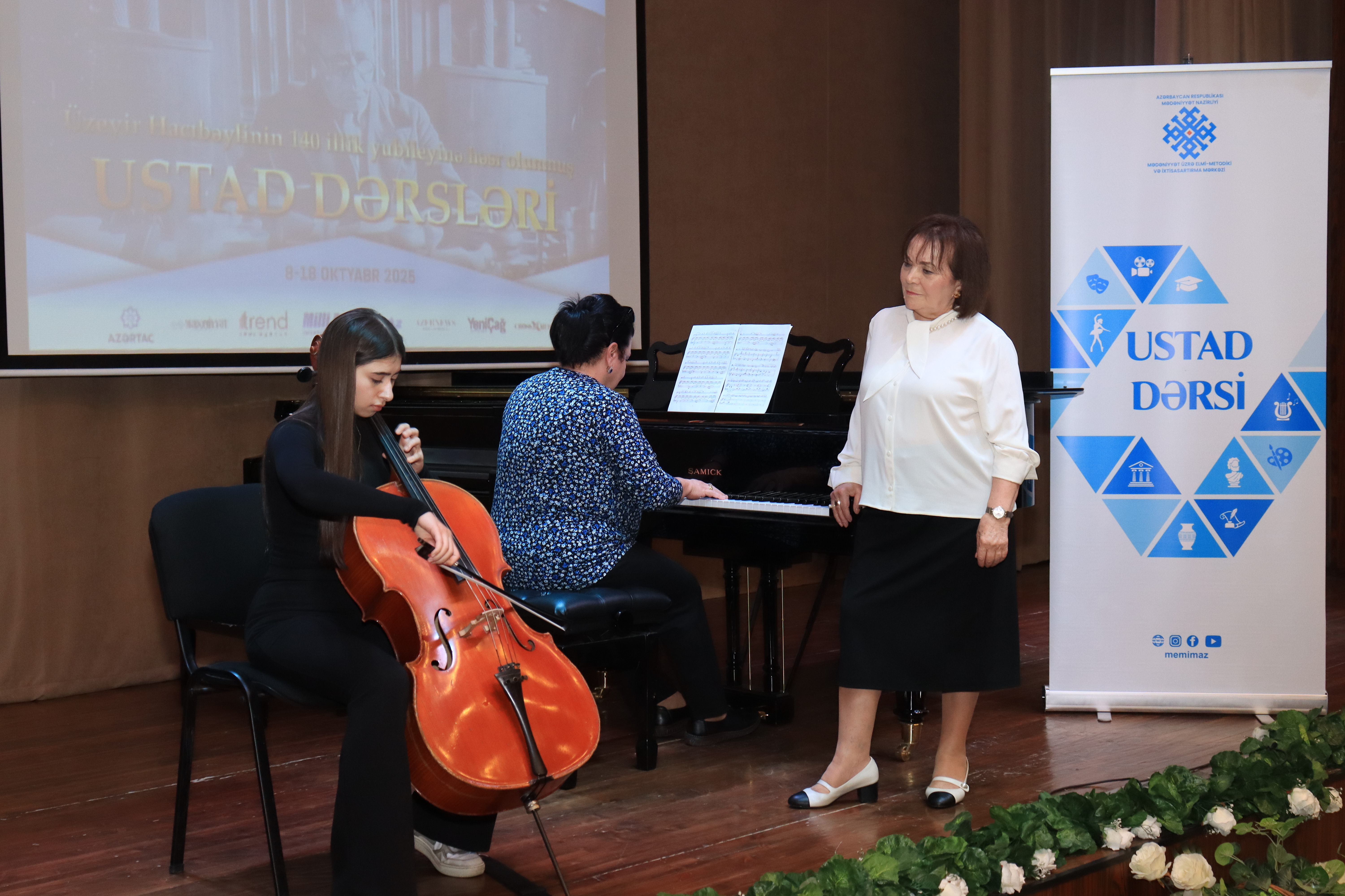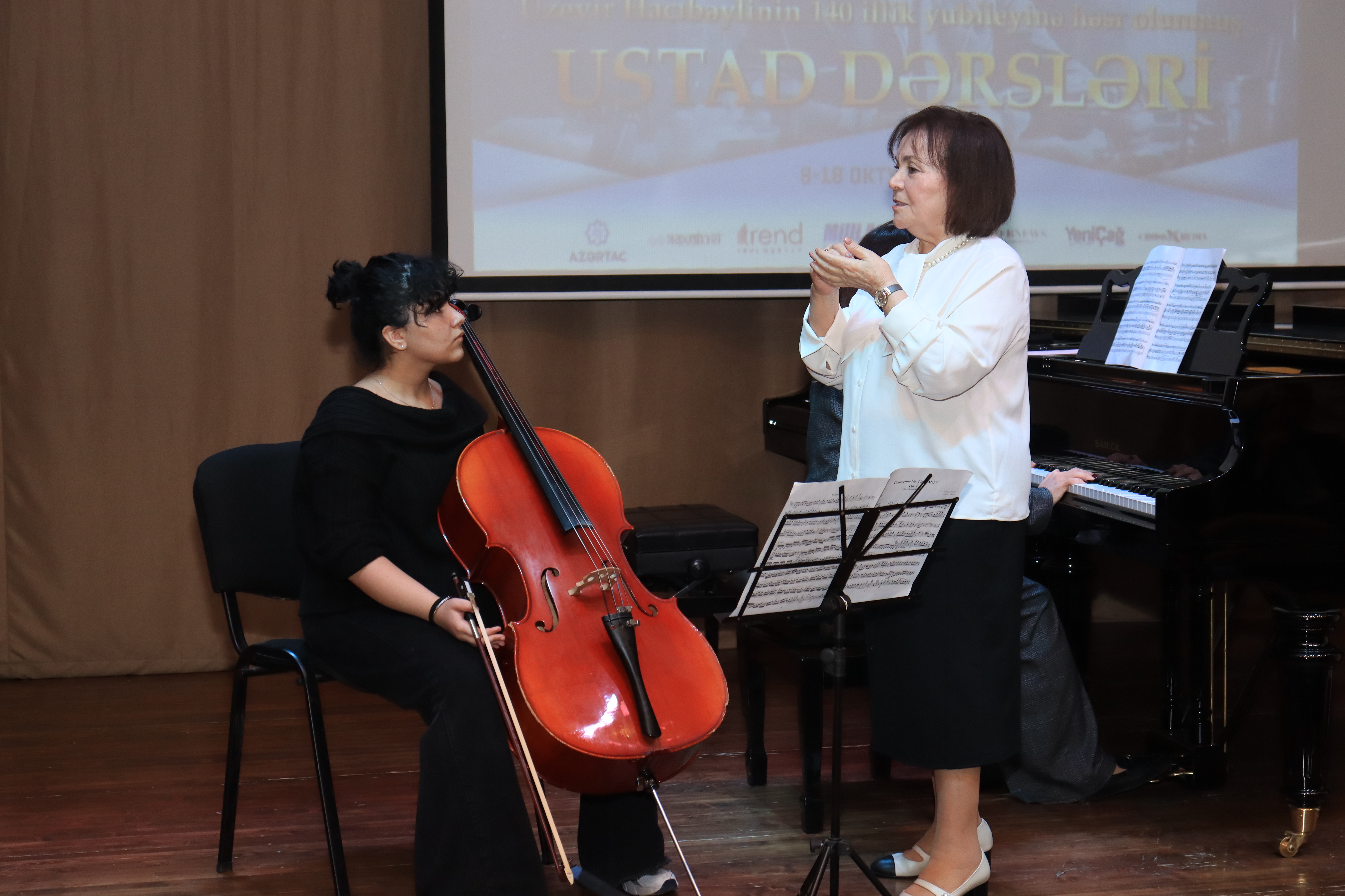 Üzeyir Hacıbəyli adına Bakı Musiqi Akademiyası İfaçılıq fakültəsinin dekanı Əməkdar incəsənət xadimi, professor Nəzmiyyə Abbaszadənin apardığı ustad dərsində Q.Qarayev adına Mərkəzi İncəsənət Məktəbi, Leopold və Mstislav Rostropoviçlər adına 21 nömrəli və R.Behbudov adına 2 nömrəli onbirillik musiqi məktəblərinin şagirdləri violonçeldə ifalarını təqdim ediblər. N.Abbaszadə onlara alətdə ifa zamanı xüsusi diqqət yetirilməli məqamlardan danışıb, öz tövsiyələrini verib.