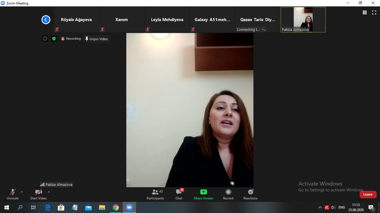 Tədbirin moderatoru Mərkəzin Elmi katibi Cavid Əliyev karantin dövrünün bilik və bacarıqların artırılması üçün əlverişli şərait yaratdığını bildirmiş və daha sonra dinləyicilərə layihə haqqında məlumatlar, perspektiv planlar, habelə mühazirənin müzakirə predmeti haqqında məlumat vermişdir. Məruzə ilə ilk çıxış edən P.Almazova öz mühazirəsində Azərbaycanda muzey sahəsində aparılan islahatlar, ölkəmizdəki muzeylər dünyasının dinamik inkişafı, muzey memarlığında aparıcı tendensiyalar, muzey ekspozisiyası, muzey menecmenti və digər önəmli məsələlərə toxunmuşdur.